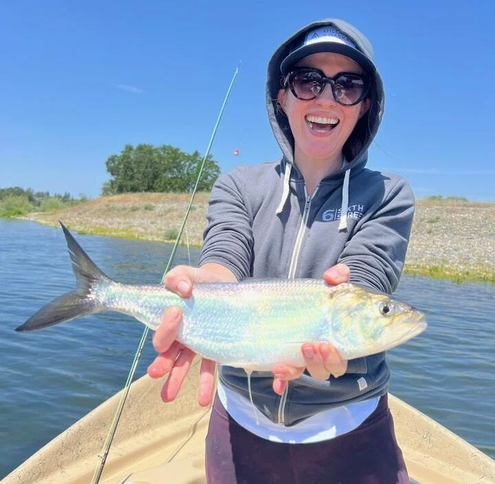 One of our favorite species to target near Sacramento is the American Shad. They are a blast to fish for with a fly rod for beginners to advanced fly anglers alike. Often found in numbers that will put many a bend in a fly rod and leave anglers grinning from ear to ear yet tuckered out from fighting these broad strong fish!